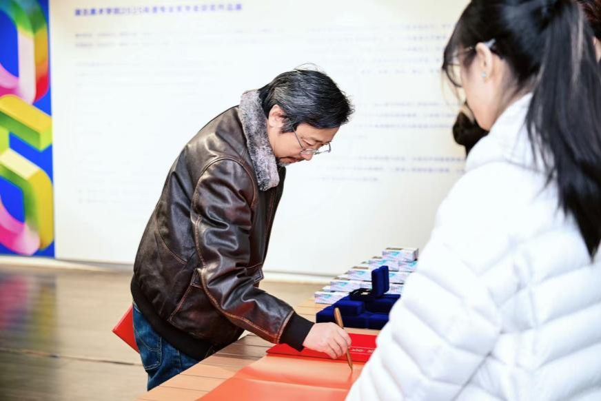 颁奖环节中,张杰宣读了2025年度专业奖学金获奖名单。与会嘉宾及出资方代表分别为“邵声朗艺术奖”“红星宣纸奖学金”“北村奖学金”“许钦松创作奖”“致美奖学金”等获奖学生颁奖并合影留念。