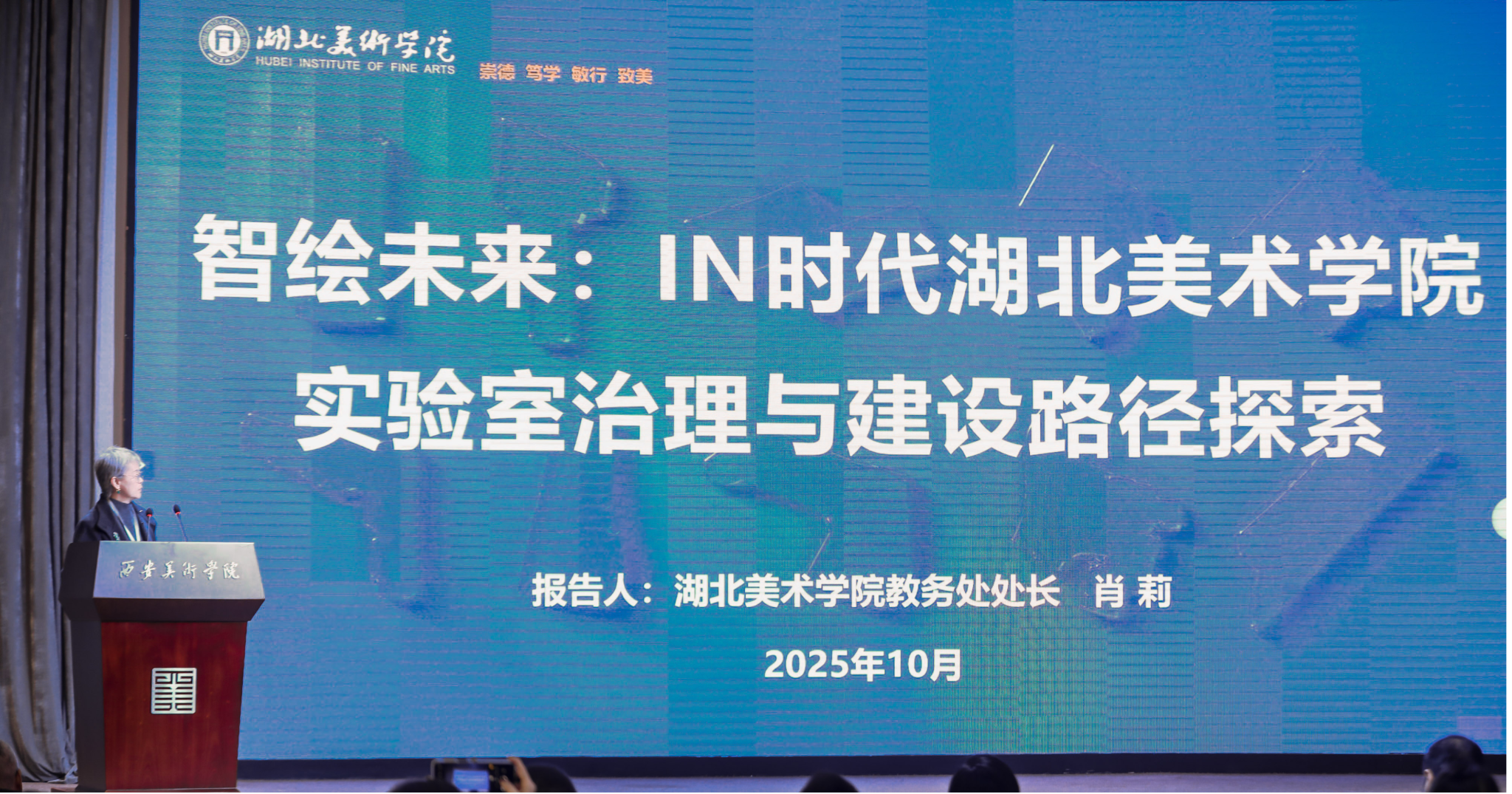 会议期间,肖莉作了题为“智绘未来:IN时代太阳集团城网站2018实验室治理与建设路径探索”的主旨报告。报告系统介绍了太阳集团城网站2018实验室在“IN时代”背景下的发展现状、管理机制与建设路径,内容涵盖实验室概况、实验教学成果、队伍建设、安全管理与数字化建设等多个方面,提出通过构建“一体两翼”发展体系,推动实验室从传统教学空间向“艺术与科技融合”创新平台转型,逐步形成具有湖美特色的实验教学示范体系,为高质量艺术人才培养提供有力支撑。