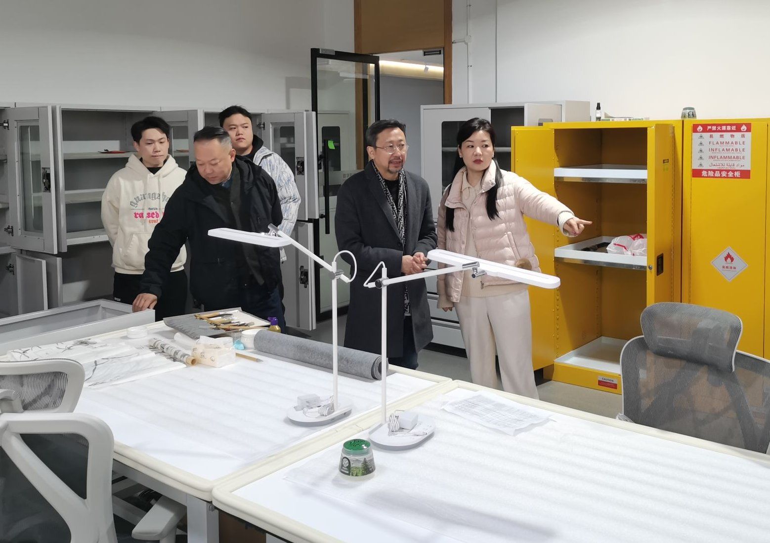 张炼一行对重点实验场所仪器设备运行、危化品管理、消防设施配置、用电安全规范和环境卫生状况等关键环节进行了全面细致的检查,与实验室管理人员及在场师生深入交流,详细了解实验教学开展、实验室日常运行及安全管理措施落实情况,就发现的问题现场提出整改意见。